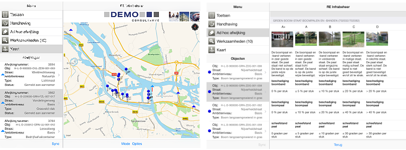 DEMO Consultants heeft RE Infrabeheer ontwikkeld om de kwaliteit van de infrastructuur meetbaar te maken, te kunnen controleren en in de tijd te kunnen volgen. Inspectiewaarnemingen worden geobjectiveerd door het gebruik van conditiescores (NEN 2767) of beeldmeetlatten (CROW). Door de informatie direct digitaal vanuit het veld te versturen en te verwerken zonder een papieren vertaalslag worden processen gestroomlijnd. RE Infrabeheer zorgt voor slimmere en goedkopere inspecties met een hogere en objectieve informatiewaarde. Afspraken uit prestatiecontracten worden objectief en meetbaar. Praktijk heeft inmiddels aangetoond, dat dit tot forse kostenbesparingen leidt!